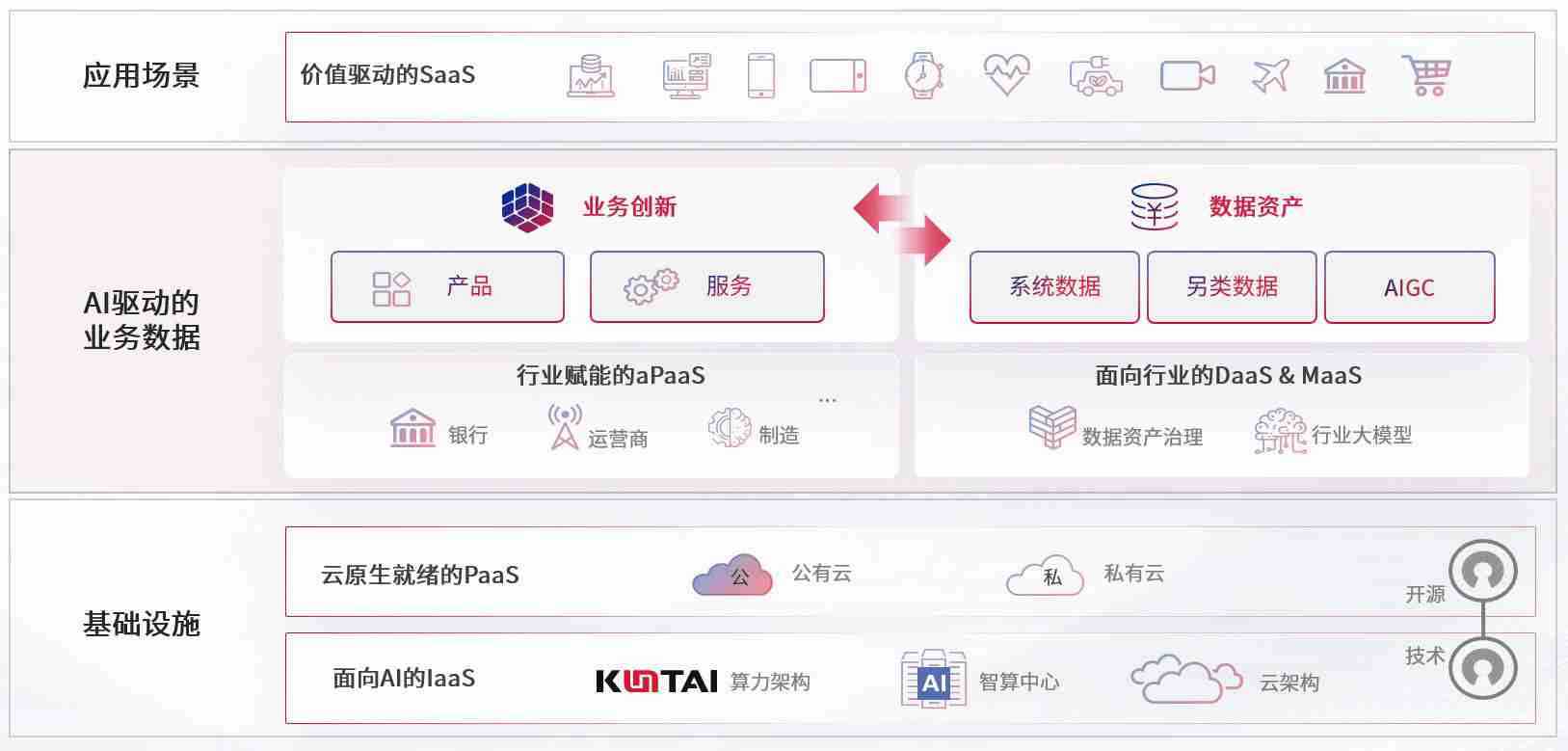 数字时代,,,,围绕企业数字化转型的关键要素,,,尊龙数码开创性的提出数云融合战略和技术体系框架,,,,着力在云原生、、、、数字原生、、AI原生和信创产业上架构产品和服务能力,,为处在不同数字化转型阶段的快消零售、、、、汽车、、、金融、、医疗、、、政企、、教育、、、、运营商等行业客户提供泛在的敏捷IT能力和融合的数据驱动能力,,,,构建跨界融合创新的数字业务场景和新业务模式,,,助力企业级客户建立面向未来的核心能力和竞争优势,,,,全面推动社会的数字化、、智能化转型升级。。